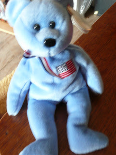 This is America the Beanie Baby, a tribute to the victims of September 11th. The bear is blue with an American flag on its chest. I don't know exactly how many Beanie Baby tributes exist, but I have posted a couple so far.